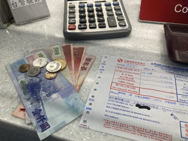 台湾では町中で両替してもレートは変わらないので、外国人に慣れている空港で両替を済ませるのがスムーズでベストです。