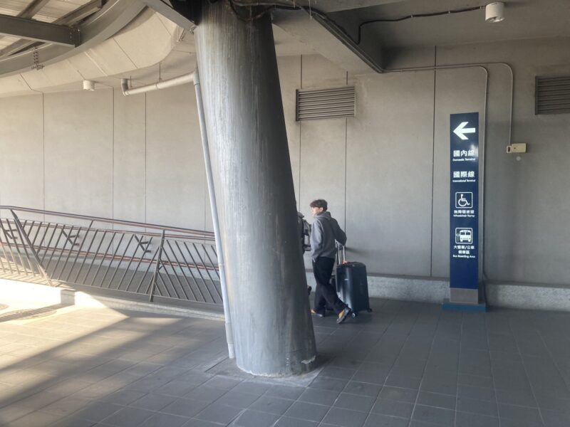 そして、台中空港のバスターミナルに到着。降りてチェックインカウンターまで移動します。