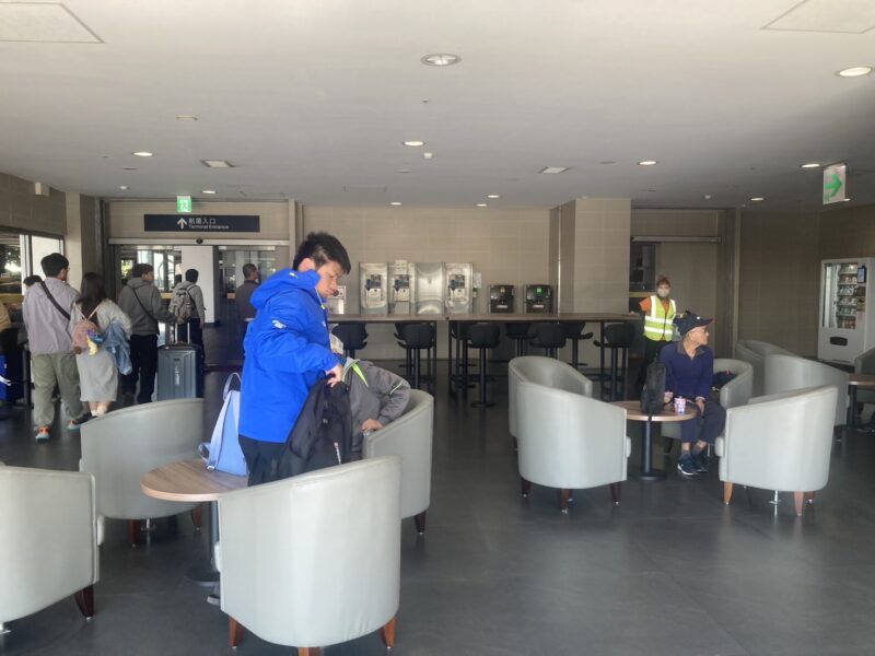 エスカレーターで下ると、広々としたバスターミナルの待機スペースが現れます。