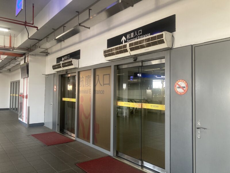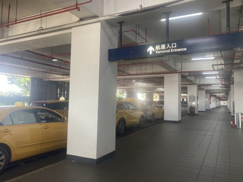 タクシー乗り場をしばらく進むと、右側に空港ターミナルへの入口が現れます。
