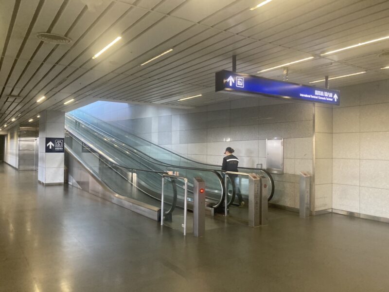 そして標識の右奥へ少し移動すると地下への案内があるので、そのままエスカレーターを下っていきます。