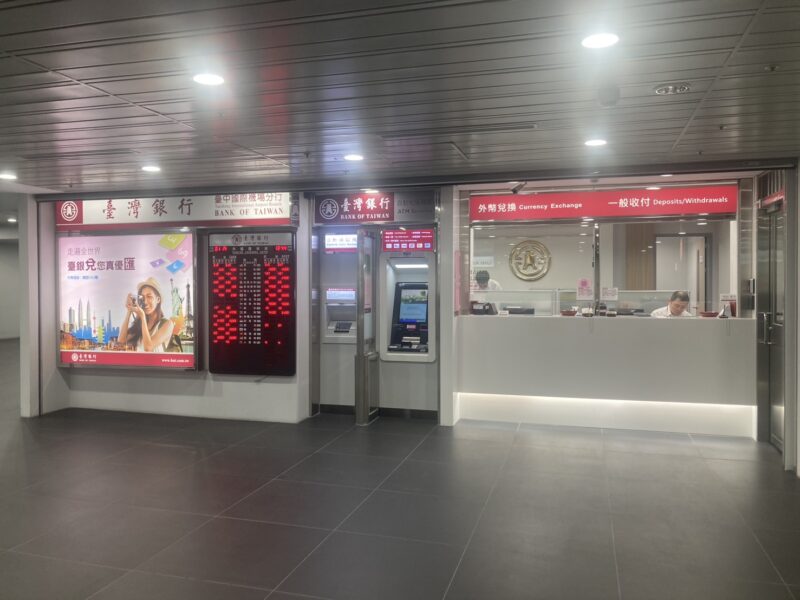 空港に到着したらまず済ませておきたいのが「両替」ですよね。台中空港の両替所は国際線到着口からすぐの場所にありました。