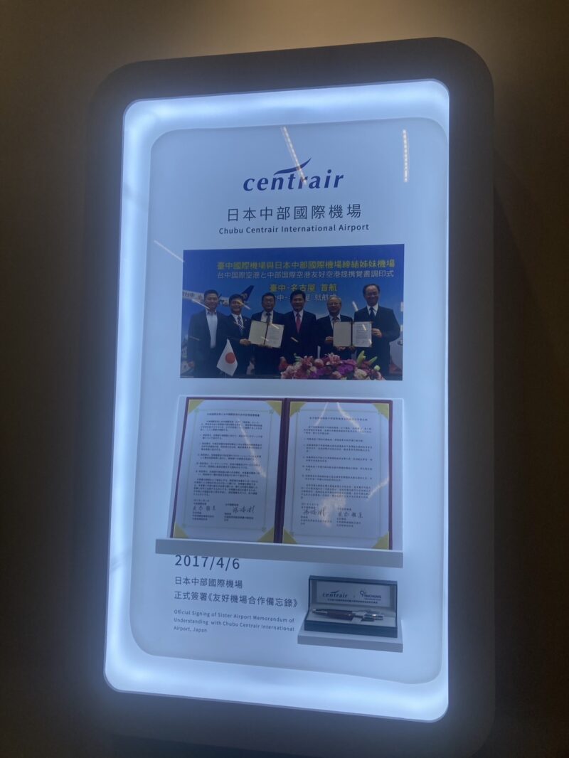 台中空港ではセントレアや高松空港との提携記念の展示もされていました。