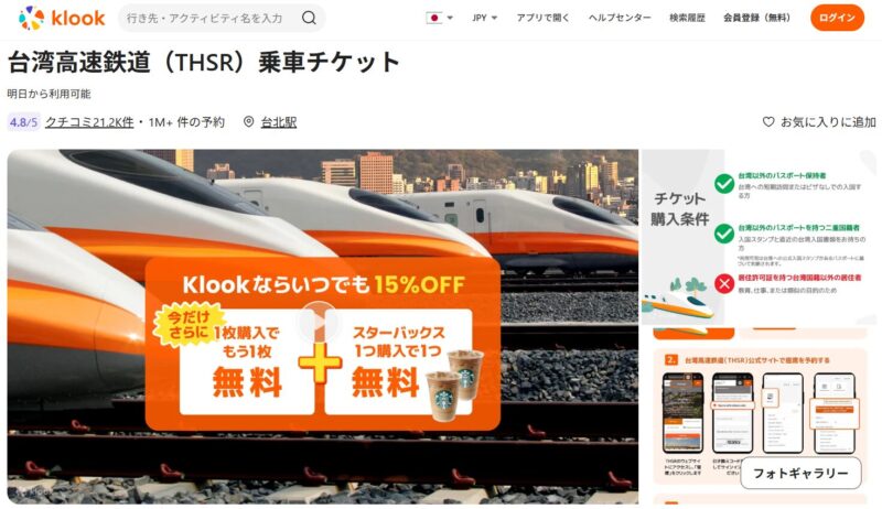 KlookやKKdayでは台湾新幹線をお得な料金で購入できるので、そちらのチェックもお忘れなく!