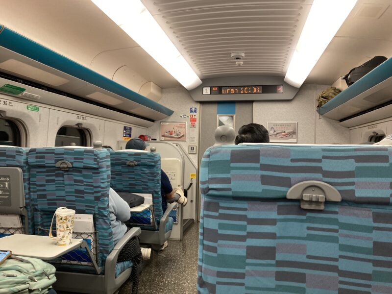 台湾の新幹線は日本の会社が製造しているため、外観も内観もまるで日本の新幹線。