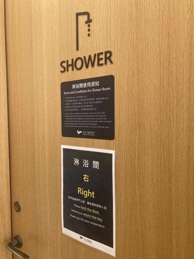 第2ターミナルの制限エリアでは、オリエンタルクラブラウンジ内にあるシャワーが使えます。