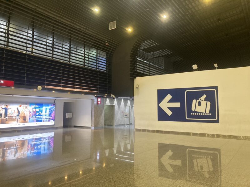 ただし、到着後といっても預け荷物を回収するエリアにあるため、SIMカードのお店や大きな電光掲示板のある到着エリアに一度出ると戻ることができません