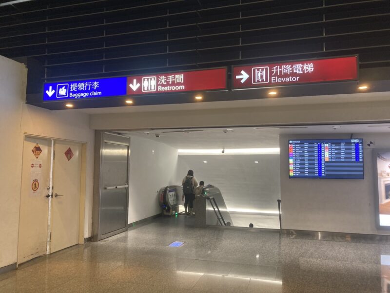 預け荷物回収エリアは、入国審査を終えた先にあります。入国審査後にエスカレーターで下っていきましょう。