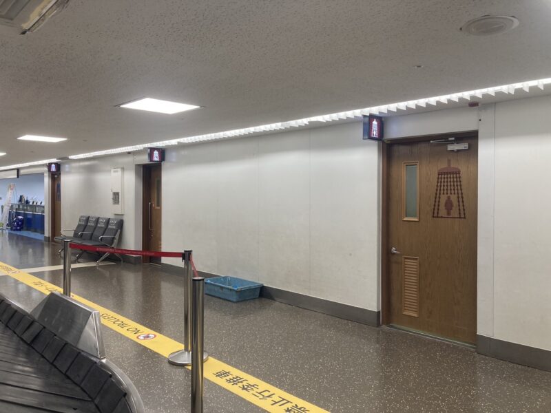 実際に預け荷物回収エリアの左側手前に行くと、確かにシャワールームが。気づく人は少なさそうで、RPGゲームの隠れステージみたいな感覚です。