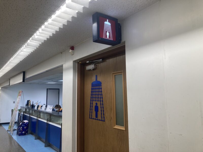 このシャワールームは24時間いつでも使うことができます!僕は深夜2時ごろの到着だったのですが、問題なく使えました。受付も不要でスムーズです。