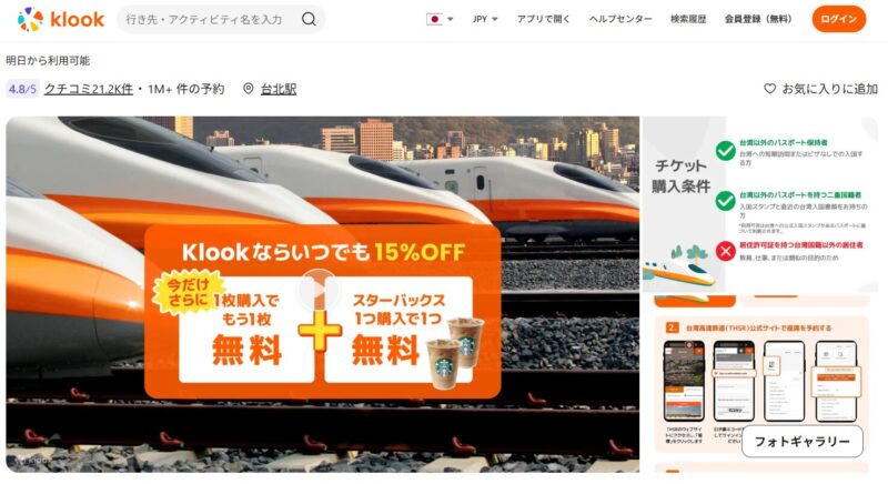 先ほどもチラッとご紹介しましたが、台湾新幹線を利用するなら海外アクティビティ予約サイトの「Klook」や「KKday」を経由して購入するのが超お得!