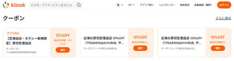 Klookでは割引クーポンも配布されているので、お得に移動できること間違いなし。